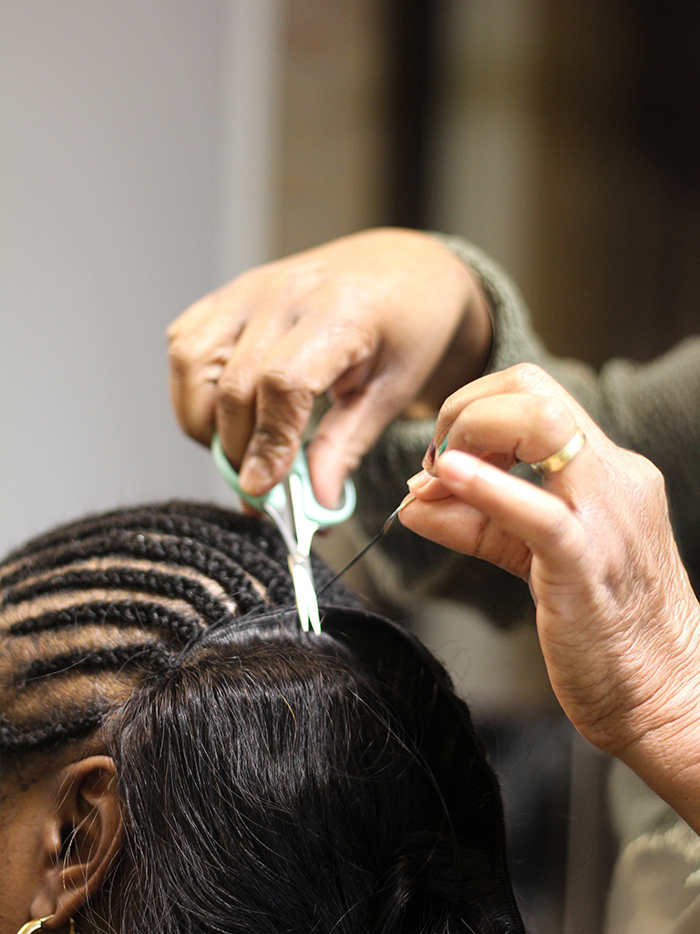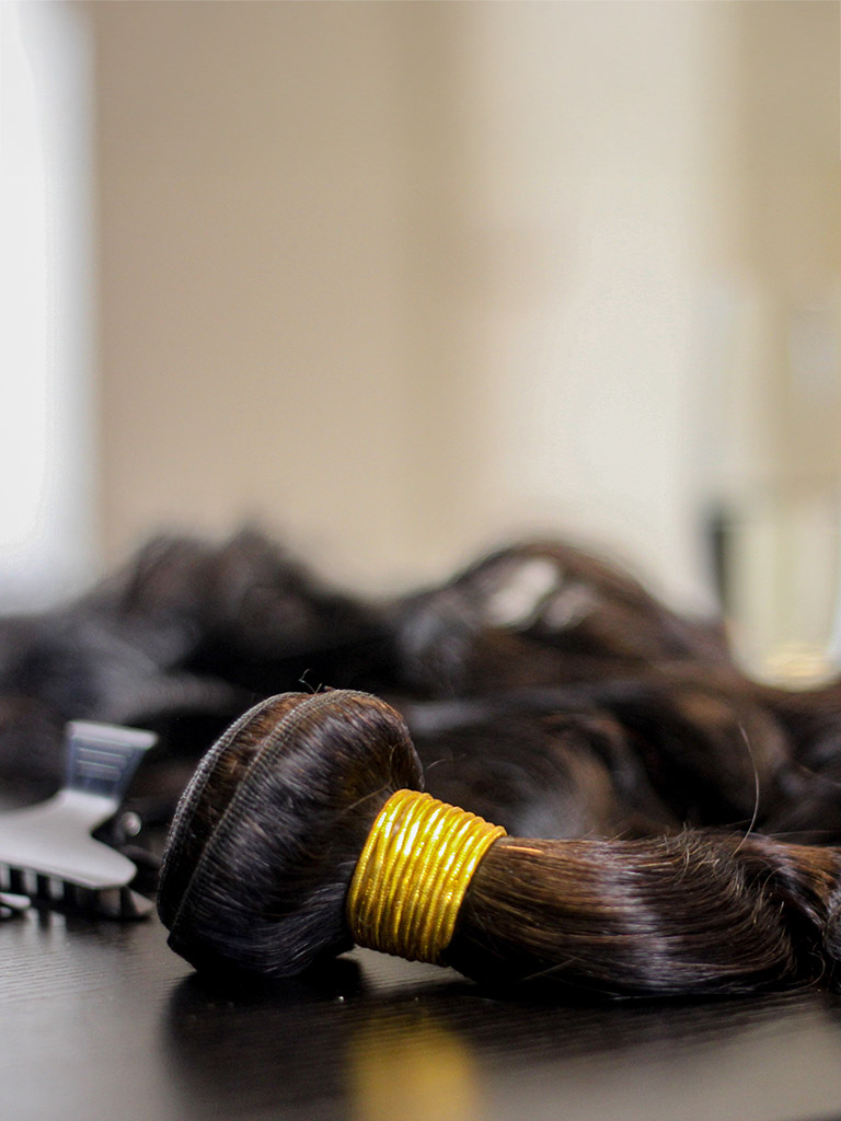 Hierbij worden strengen van kunstmatig of menselijk haar geweven in je eigen natuurlijke haar. Eerst wordt je eigen haar gevlochten in kleine vlechtjes, waarna de strengen kunstmatig of menselijk haar met behulp van naald en draad aan de kleine vlechtjes vastgemaakt worden. Dit resulteert in een volle haardos met een natuurlijke look die, bij de juiste verzorging, zelfs maandenlang meegaat voordat de extensions moeten worden verwijderd en eventueel opnieuw moeten worden geplaatst. Weave extensions zijn één van de minst schadelijke extensions voor je haar, omdat er geen gebruik gemaakt wordt hitte of lijm die je haar kunnen beschadigen.